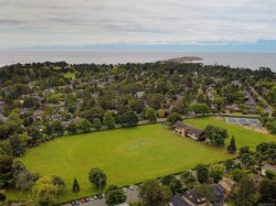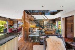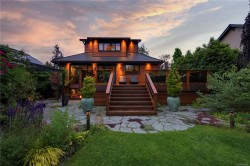 Sustainable Masterpiece! Located just steps from the beach this modern gem is ideal for the environmentally conscious couple, seeking state of the art amenities. Choosing natural, organic materials such as, clear cut cedar, copper, solid walnut floors and lemurian supreme labradorite backsplash/countertops, master craftsmen created a home of exceptional quality and sophistication that truly excites the senses. Featuring an unusual totem pole and sand blasted glass panels crafted by award winning carver Klatle-bhi, the home is truly a work of art. A separate guest house provides a comfortable hermitage for a family member in the private, fully fenced garden with automated gates. Bathed in natural light by day and dramatically "uplighted" by night, noetic purchasers are encouraged to view in both lights. Situated on the "beach block", located close to the Victoria Golf Club, surround yourself in the unparalleled beauty and unequalled lifestyle in one of Canada's finest neighbourhoods.