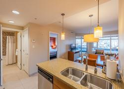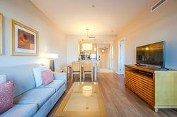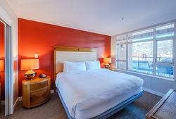 Welcome to affordable vacation ownership in Canada's desert paradise! This 1/12th fractional interest allows stress-free, lock and leave vacation property ownership, with exclusive access four weeks per year, one in each season. On the quiet, west facing side of the resort with town and mountain views, this 600 square foot unit has loads of natural light, and a sliding door walk-out to your spacious, sheltered terrace ideal for alfresco dining and stunning sunset views. The well appointed kitchen overlooks your open concept living/dining area, ideal for entertaining. The spacious bedroom is luxuriously appointed with a king sized bed to ensure restful sleep, and the bathroom features a deep soaker tub/shower combo and generous vanity . Close proximity to elevator and stairs ensures quick access to the beach, pool deck, and secure, indoor parking. Watermark resort amenities include pool, hot tubs (one year round), gym, spa, and beautiful function rooms. Onsite dining options include 15 Park Bistro (with seasonal patio and grill), Boston Pizza, Backroads Brewery, ands Roberto's Gelato. Located just steps to all the vibrant shops, services and amazing dining options Osoyoos has to offer; world class wineries, dining, golf, skiing, watersports and cultural experiences are all in close proximity. Enrollment in professionally managed rental pool can offset ownership costs with rental income when not in use. Subject to GST. Sq ft per builder plans. Buyer to verify if important.