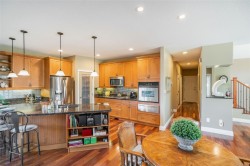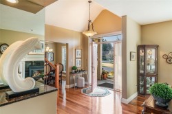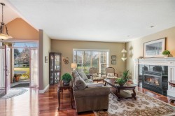 Executive Elegance in Aerie Estates. This beautifully appointed home is ideally located on a meticulously landscaped, expanded lot in the prestigious Aerie Estates community close to Parksville's amenities. A bright foyer with cathedral ceilings welcomes you into an open-concept living space featuring wood floors, oversized windows and a cozy natural gas fireplace. The chef’s kitchen offers a walk-in pantry, granite sink, premium appliances, and generous counter space, perfect for entertaining. The main-level primary suite provides comfort with a walk-in closet and spa-inspired 5-piece ensuite. Upstairs features a spacious family room, dedicated office, two additional bedrooms, and a full bathroom. Enjoy a private, fully fenced backyard with a peaceful patio retreat. Additional highlights include a heat pump, furnace, 4.5-foot crawl space, double garage, security system, and underground sprinklers. An exceptional opportunity in one of Parksville’s most desirable neighborhoods.