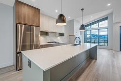 Welcome to sophisticated modern living with panoramic Okanagan views at The Ridge Penticton—a thoughtfully designed contemporary duplex offering over 2,000 sq. ft. of impeccably planned space across three luxurious levels, all seamlessly connected by a private elevator for ultimate convenience. Perched to capture breathtaking views of Skaha Lake and the Okanagan Valley, this home is a rare blend of modern elegance and everyday functionality. The top floor is a true showpiece—ideal for morning coffee or hosting stylish dinners against a stunning scenic backdrop. A versatile bedroom or den on this level provides flexibility to suit your lifestyle, whether as a guest suite, home office, or creative studio. The middle level features a serene primary retreat complete with a spa-inspired 5-piece ensuite with in-floor heating and a generous walk-in closet. An additional spacious bedroom with its own private 4-piece ensuite ensures comfort and privacy for family or guests. A well-appointed laundry room adds everyday practicality. On the ground level, enjoy your own private theatre room and powder room. Groceries are easy to bring in via level laneway access, and the 2-car tandem garage adds convenience. High-end finishes throughout include quartz countertops, luxury vinyl plank flooring, premium stainless steel appliances, and a curated modern lighting package. This is low-maintenance, high-style living at its finest. Embrace the Okanagan lifestyle in a home that truly has it all.