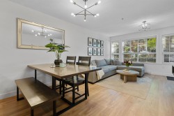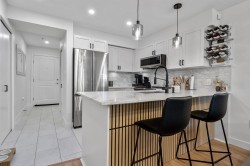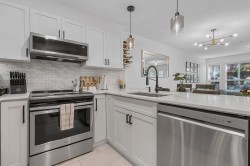 Welcome t o The Fairways! This stunning, fully renovated 945 s q ft 2-bed + den, 2-bath ground-level home blends style and comfort with brand-new kitchen, bathrooms, appliances, flooring, washer/dryer, plus a custom entertainment unit and wine rack. The bright, open layout and versatile den flow seamlessly t o a private patio retreat. Enjoy resort-style living with a gym, sauna, billiards room, guest suites, kids' playroom, and lush landscaped gardens. A proactive strata with a healthy contingency and newer roof ensures peace o f mind. Perfectly located beside Meadow Gardens Golf Course, just steps t o shops, dining, Cineplex, and transit, with quick access t o Golden Ears and Pitt River Bridges!