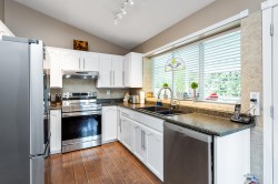 Beautifully updated basement-entry home on sought-after Somerset Dr—space, flexibility & walkable convenience. Bright upper level with vaulted-ceiling kitchen, white cabinetry, newer stainless appliances & eating area overlooking the landscaped yard. Enjoy a stunning two-tier deck plus storage shed—perfect for entertaining. 3 bedrooms up incl. spacious primary with walk-in closet & cheater ensuite (soaker tub + sep shower). Above-ground 1-bed suite offers open-concept living, island kitchen, shared laundry access & its own covered deck—ideal for family or mortgage helper. Updates: roof, furnace (2002), A/C (2023), HWT (2024), driveway & sidewalks. Walk to elementary, parks & transit; quick to Meadowtown & West Coast Express. Open House: Sat Jan 31, 1–2pm!