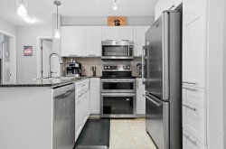 Discover comfort and convenience in this bright 2-bed, 1-bath home at Fairways, ideally located next to Meadow Gardens Golf Course in Pitt Meadows. This well-kept unit features an open-concept layout with large windows, updated floors, and a spacious kitchen with stainless steel appliances, granite counters, and a breakfast bar. The living area includes a cozy electric fireplace, and the primary bedroom offers generous closet space, with a versatile second bedroom perfect for guests or a home office. Keep cool in the summer with permanently installed air conditioning. The home comes with two parking stalls and access to excellent amenities including a gym, lounge, and guest suite. Steps to shopping, dining, and transit. An ideal blend of lifestyle and location.