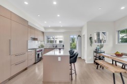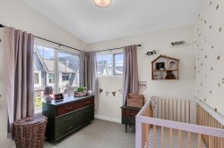 Welcome to resort-style living at Nature’s Walk This 4 bed, 4 bath duplex offers 1,920 sqft of bright, open-concept space. The gourmet kitchen features a large island, 6-burner WOLF range, SUB-ZERO fridge, quartz countertops, flat-panel cabinetry, and a cozy eating nook that opens to a private deck. The spacious dining/living room includes a fireplace and a balcony overlooking the community. Upstairs,the primary suite boasts a spa-like ensuite, heated floors and walk-in closet with custom organizers. Two more bedrooms and full bath complete the upper level. Downstairs offers a bedroom with ensuite, extra storage. The fully fenced backyard includes low-maintenance synthetic turf. Just steps to The Meadows Club with outdoor pool, hot tub, full gym, lounge, golf/sports simulator & games room.