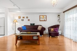 Newly renovated townhouse in popular RIVERSIDE TERRACE. The upper level has 2 large bedrooms, 2 baths (including an ensuite), and laundry. On the main level is a living & family room, a spacious kitchen, a gas F/P, a dining area, a balcony, and a covered patio with a view of the mountain & green belt. Second entrance through the street and patio. The lower level features a foyer, a double tandem garage, a storage area, and a carport in front. Newer roofs, windows, decks, and railings. Pet-friendly. Visitor parking. Close to Costco, shopping and transit. OPEN HOUSE: FEB 15 (SUNDAY) | 2-4 PM
