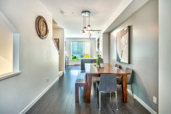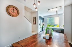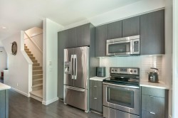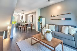 Welcome to this stunning 2-bdrm plus office, 3-bthrm townhome located in the center of Port Coquitlam. This modern residence features 9ft ceilings & a masterfully designed open-concept layout that seamlessly connects the bright living area to a sleek kitchen equipped with s/s appliances. The upper level offers two bdrms, highlighted by a primary suite w/ an ensuite. Outdoor enjoyment is easy with both a balcony and a private fenced yard. This home is thoughtfully finished w/ a dedicated office space & secure parking featuring custom garage built-ins. Beyond the front door you are steps away from scenic riverside trails & a vibrant, walkable community. BONUS: The River Club: where you can enjoy luxury amenities = outdoor pool, BBall court, gym, versatile spaces for both relaxation and play.