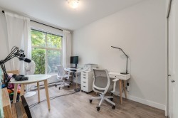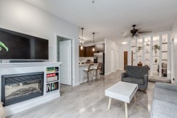 Welcome to your new home! This ideally situated, immaculate ground floor 2 bedroom 2 bathroom unit with private entrance is the perfect starter, downsizer or investment property! Recent upgrades include laminate flooring throughout, granite counters, custom lighting, custom electric fireplace, custom dining room wall feature, paint and more! The ground floor location offers a huge gated balcony with private street entrance just half a block to the newly refurbished Gates Park and all the shopping, recreation, restaurants and transit Downtown Port Coquitlam has to offer. Comes with 1 underground parking spot plus gym and a theatre room! Excellent quality building, very well run strata, everything you need in one convenient location! Book your private showing today!