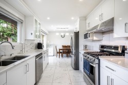 Central Location. Beautifully updated 2,300+ sqft family home on a 10,000 sqft duplex lot! Featuring 5 bedrooms and 4 bathrooms, including a 2-bedroom suite and a spacious rec room with full bath—perfect for families or those seeking a mortgage helper. Recent upgrades include laminate flooring, quartz countertops, new LG appliances, custom closets, modern lighting, updated plumbing fixtures, siding, soffits, and Leaf Guard gutters. The fully fenced yard offers plenty of space, ample parking, and potential for a coach house. Move-in ready in a fantastic location—don’t miss this opportunity!