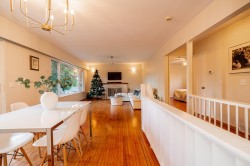 Family-friendly Mary Hill home on a 10,000 sq ft lot on a quiet street! This 5 bedroom, 2 bathroom home offers 2,342 sq ft of living space. The main level features a spacious living room with hardwood floors and a cozy fireplace that flows into the dining area. French doors open to a massive wrap-around balcony. Enjoy a well-laid-out kitchen has quartz counters, an eating area, and direct access to the balcony. The primary and secondary bedrooms overlook the private, lush backyard. The lower level includes a self-contained 2 bedroom suite with generous rooms and laminate floors. The backyard offers expansive outdoor space with decks, grassy areas, a hot tub, and excellent privacy. Updated windows and driveway parking for 8. Prime location, minutes to schools, transit, parks, and highways.