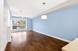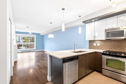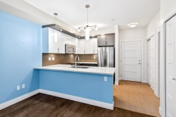 Discover this modern 1-bedroom condo in the heart of Port Coquitlam, perfect for first-time buyers or investors. Bright kitchen features quartz counters, stainless steel appliances and a large peninsula island ideal for cooking or entertaining. Spacious living area leads to an oversized den, creating the perfect home office or studio. An updated bathroom offers a sleek vanity, stylish tile work and a deep soaker tub. Well-sized bedroom provides excellent storage. In a well-managed, 10-year-young building, this home offers peace of mind and strong future value. Includes parking and storage. Unbeatable walkable location steps to the West Coast Express, PoCo Rec Centre, Gates Park, shops and the scenic Traboulay Trail everything today’s lifestyle demands.