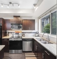 Spacious 3 bed + den, 2.5 bath townhome, Partially Reno’d at Aviva with over 1,500 sq ft of stylish living! Top-floor primary suite features vaulted ceilings, walk-in closet, 5-piece ensuite & private rooftop deck. Bright main level with 9 ft ceilings, open-concept layout, and a gourmet kitchen with granite counters, stainless steel appliances, large island & convenient powder room. Full-size den is perfect for a home office or nursery. includes 2 rare side-by-side parking stalls. Well-managed, pet-friendly building with gym, party room & bike storage. Unbeatable location, steps to schools, Gates Park, Coquitlam River trails, shopping, transit, and West Coast Express. A rare find in the heart of Port Coquitlam! Open House Sunday Dec 7 11:00-12:30