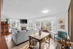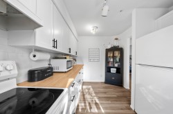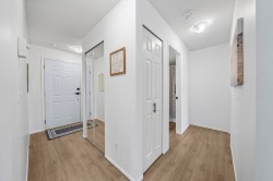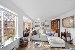 Beautifully renovated 2 bed, 2 bath corner unit in Central Port Coquitlam, surrounded by greenery and move-in ready. Extensive updates include new laminate flooring, fresh paint, a brand-new kitchen with appliances, updated bathrooms, new hot water tank, and more. Large windows enhance the home with natural light, while the tree-lined outlook offers privacy. Includes two parking stalls and a storage locker. Proactive strata. Prime location steps to riverfront trails, pedestrian bridge to Downtown PoCo, shops, cafés, breweries, and the new recreation centre. Close to West Coast Express and transit—offering the perfect blend of comfort, style, and convenience. Book your showing! Open House- Saturday 1-3pm