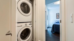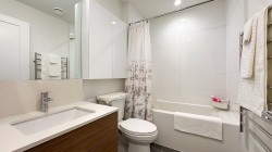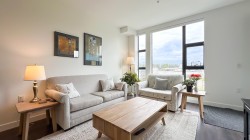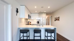 Welcome to this stunning 2-bedroom + den sub-penthouse in the heart of Port Coquitlam! This 1,059 sq. ft. corner home boasts an expansive 87 sq. ft. patio with sweeping mountain views. Thoughtfully upgraded by its loving owner, every detail has been considered — custom California Closets in each bedroom, a stylishly upgraded entry door, spice-organized kitchen, heated towel racks, built-in Sonos surround sound system, and air conditioning for year-round comfort. The home has been meticulously maintained and feels like new. Building is only 2 years young and includes rare 2 automated parking stalls. A true gem in Central PoCo, just steps to shops, breweries, the community centre, schools, parks, and transit.