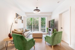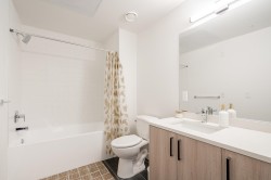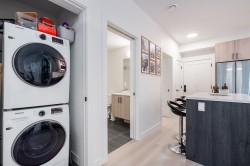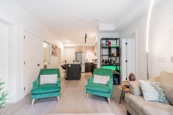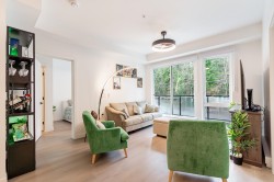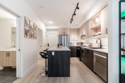 GST INCLUDED and Move in Ready! This brand-new 2 bedroom, 2 bathroom + den home offers a bright, open-concept layout with expansive windows, sleek finishes, and elevated comfort. The designer kitchen boasts quartz countertops, stainless appliances, and contemporary cabinetry, perfect for everyday living or entertaining. A flex den offers the ideal space for a home office or nursery. Huge balcony for relaxing and entertainment. Located steps from St Johns best shops, restaurants, boutiques, Brewers Row, Rocky Point Park, transit, and SkyTrain. Includes 1 secure parking stall and 1 storage locker.