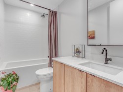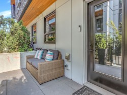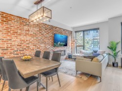 This stunning townhome by Platform by Aragon offers a modern, almost-new 3 beds, 3 baths +Rooftop patio home. Highly desirable location, yet quiet and gated. Steps away from Rocky Point Park, Brewer's Row, Shopping, Moody Centre Skytrain/West Coast Express & schools. Main floor features chic reclaimed-brick wall with linear fireplace, powder room and kitchen w/matte cabinets/fixtures, waterfall-edge quartz countertop and SS appliances w/gas range. Light wide-planked flooring and custom closets throughout. Whole-level master bedroom w/luxurious 5-piece ensuite bathroom, 2 parking stalls (EV Permitted), 1 Storage locker, 2-5-10 warranty. Amenities include gym, bike storage, BBQ/picnic area. Perfect for professionals, young families, downsizers.