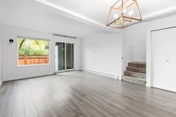 This beautifully updated 3 bedroom, 2 bath end-unit townhouse offers over 1,030 sqft of comfortable living in a peaceful, community-oriented complex. Step inside to find a bright, open-concept main floor featuring a spacious living & dining area, warm laminate flooring, & large windows that bring in natural light. The modern kitchen is well-equipped with updated appliances & ample cabinet space, opening to a private, fenced patio - perfect for morning coffee, bbq’s, or letting kids & pets play safely. Upstairs, you’ll find three generous bedrooms, including a primary suite with great closet space and a feature wall. Enjoy the convenience of two parking spots, in-suite laundry, & private backyard.