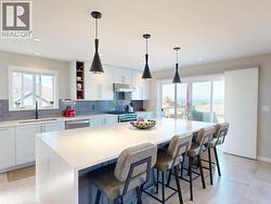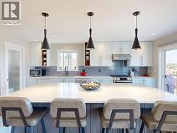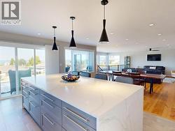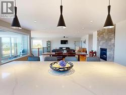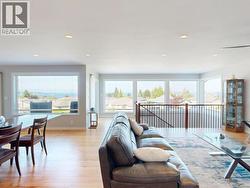 Stunning Oceanview Home on Quiet Cul-de-Sac. This beautifully designed 4-bed, 4-bath home blends luxury, comfort, and panoramic ocean views. Upstairs features two spacious bedrooms with ensuites, including a primary retreat with heated floors, walk-in shower, and soaker tub. The open-concept main level showcases a chef's kitchen with massive island, gas range, and full stand-up stainless fridge/freezer, flowing seamlessly into the dining and living areas to maximize the view. Locally milled hardwood floors and stairs add warmth throughout. The lower level offers two more bedrooms, a full bath, large rec room, storage, and garage access. Outside, enjoy professional landscaping and a fully fenced backyard, perfect for kids, pets, or relaxing. This home has been fully renovated, with newer roof, windows, heating system, flooring, and much more. Tucked away on a quiet cul-de-sac and steps from Penticton trails, this home truly has it all. Don't miss your chance to call it yours! (id:7525)