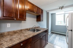 This fully accessible apartment is on the main floor with easy access for anyone needing extra assistance. With many upgrades including new paint, new flooring and nicely updated dark wood cabinetry this is move in ready. Currently tenanted with a tenant who wishes to stay. This is an easy investment opportunity for investors. Currently leased for 1150.00 a month until April 2026 and the tenant pays their own hydro.