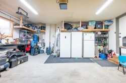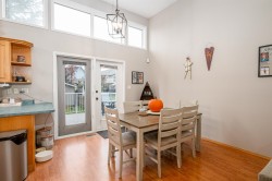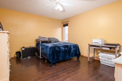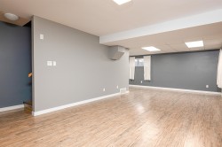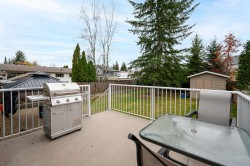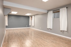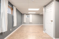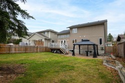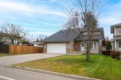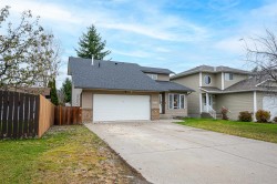 Soaring ceilings and West Coast contemporary design welcome you to this bright, spacious home. Clerestory windows fill the open living and dining areas with light, and garden doors lead to a sundeck and large fenced backyard with interlocking brick patio. The main-floor primary bedroom features a walk-in closet, 4-piece cheater ensuite, and nearby laundry. Upstairs offers two bedrooms with walk-in closets and a full bath; the lower level includes a large rec room, extra bedroom, bath, and flex space. Central air conditioning. 200 AMP in garage, Updates include a new roof, hot water tank, and furnace. Double garage and fantastic location!