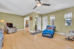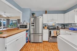 The fully fenced yard is thoughtfully laid out, featuring a separate garden area complete with raised garden beds, while the other side of the property offers a large gated section ideal for RV parking. Outdoor living is a highlight, with a private, covered back deck overlooking Lions Park, perfect for quiet mornings or entertaining and an uncovered front deck where you can enjoy sunny, south-facing views.