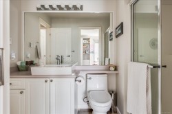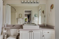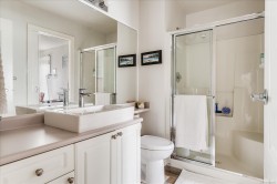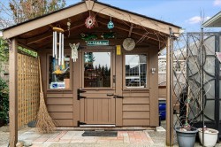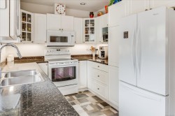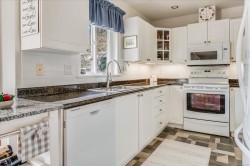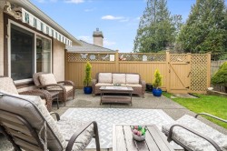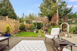 Beautifully updated 55+ patio home in a quiet, offering the perfect balance of downsizing and comfortable living space. Featuring 2 bedrooms and 2 bathrooms, a double car garage, ideal for those who still want room for hobbies or seasonal items. Recent upgrades include new bedroom carpeting, blackout blinds throughout, and a new fireplace in the den. The southwest-facing backyard is a true highlight and has been completely redone with irrigation, excellent privacy, a rear patio area, and a full-length awning extends all the way out to provide shade and comfort. The garage is exceptionally functional, with a workshop area, additional to the workshop/storage in the shed and upper storage with plywood flooring. Located close to walking trails and outdoor amenities, this well-run strata allows one pet with no size restriction, does not permit rentals, and maintains non-smoking common and limited common property areas, contributing to a peaceful, community-oriented setting.