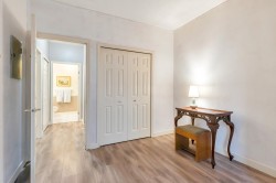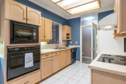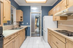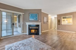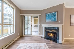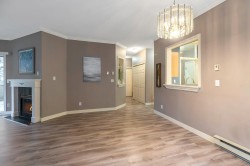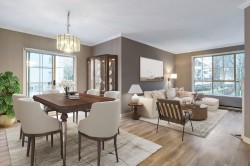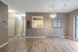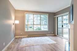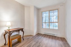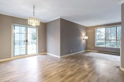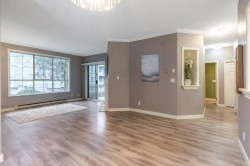 Corner-End Unit with a Fabulous floor plan & Loads of Windows & Natural light with 9' Ceilings! NOT located on the Main floor as address suggests, but secured on the second floor. Professionally measured at 1,184 sqft (strata plan says 1,115 sqft) plus an additional near 600 square feet of outdoor patio and deck. Lament floors in great condition, crown moldings, kitchen with eating area plus space for a formal dining room to entertain as well. Walk-in closet in master bedroom and full size washer and dryer in-suite. 55+ Building offering indoor pool and hot tub, 3 guests suites for family or friends, work shop, gym, games room, visitor parking and fabulous party room! Cat or Dog allowed up to 15'' high! Quick possession possible!