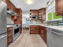 Beautifully updated and move-in ready, this charming 4-bedroom, 2.5-bathroom residence is nestled in a desirable, family-friendly area of West Richmond. Thoughtful upgrades in recent years include a contemporary kitchen, updated bathrooms, modern appliances, engineered hardwood flooring, new carpets, and air conditioning. The bright, west-facing living room enjoys brilliant afternoon and evening sun, creating an inviting space for relaxing or entertaining. Step outside to a generous east-facing backyard featuring a well-maintained 276 sq. ft. paved patio—ideal for gardening enthusiasts & outdoor gatherings. Located within the catchment areas of Maple Lane Elementary and Steveston-London Secondary, and just minutes from Steveston Village, Garry Point Park, and Richmond Centre.