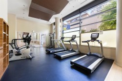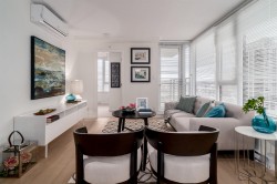 3 Bedroom + 3 Full Bathroom floorplan all on one level (two master bedrooms). No wasted space open floor plan, and each bedroom is paired with its own full bathroom. High end Bosch appliances. All rooms are individually Heat and A/C controlled. Enjoy yourself with the indoor pool, hot tub, sauna, gym and yoga studio. Or walk out to a private 2-acre park with water features and playground on the 6th floor. Walking distance and conveniently located in between Canada Line. 2025 - New carpets and newly painting throughout. Two Parking stalls (Tandem style).