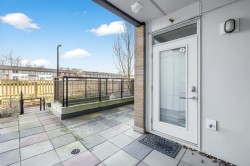 ALEXANDRA COURT by Polygon - Stylish 1 bed home in Richmond's prime shopping and dining district. Features a large wraparound patio with private entrance, offering a townhome-like feel. Enjoy geothermal heating/cooling, 9' ceilings, Ecobee smart thermostat, and updated fixtures. Modern kitchen with over-height cabinetry, quartz counters, integrated appliances, and gas cooktop. Primary bedroom includes walk-in closet and cheater ensuite with double sinks. Outstanding 12,000 sq ft clubhouse with pool, hot tub, gym, media room, and guest suite. Steps to Walmart, restaurants, Kwantlen, shopping, and the Canada Line. Open House: Jan31&Feb01, Sat&Sun, 2-4pm
