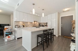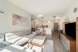 Welcome to Trafalgar Square by Polygon. This spacious 930 sqft 2-bedroom + open den home offers a thoughtfully designed layout, perfect for comfortable everyday living. The open den is ideal as a home office, reading nook, or extra storage space to suit your lifestyle needs. Enjoy 9’ ceilings, air conditioning, and a private gated patio that seamlessly connects indoor and outdoor living. The stylish kitchen features quartz countertops, stainless steel appliances, and plenty of cabinetry for storage. One Parking Stall