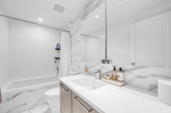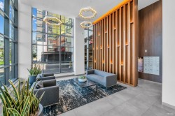 Enjoy PENTHOUSE & WATERFRONT living in this luxury condo steps from Marina and Capstan SkyTrain! LIKE-NEW condition 2BED+FLEX boasts 9" high ceilings, expansive windows, and gorgeous views of Fraser River and North Shore Mountains. Functional layout features A/C, spacious bedrooms, spa-like bathrooms, flex, engineered hardwood floors. Gourmet kitchen equipped with Miele S/S full-size appliances, Quartz countertops, and a large island with ample storage. Balcony enhanced with deck tiles. Added benefit of low utility costs and under 2-5-10 warranty. World-class amenities include pool, hot tub, sauna, steam, gym, party, study, games, and music rooms, BBQ area, playground, and more. Effortless lifestyle with transit, malls, groceries, restaurants, services, and entertainment all within reach!