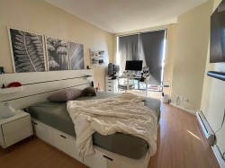 Well appointed 2 bedroom and 2 bathroom unit with an open floor plan. 13th floor with a great view. The room sizes are quite generous and there is a balcony off of each bedroom. The unit comes with one parking stall #88 and no storage locker. The building has a multitude of meeting rooms, an exercise room and a rooftop garden. EV charging in the underground parking available.