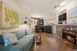 STEVESTON SOUTH – Rarely available, east-facing garden home with a unique floorplan full of character. Offering two separated bedrooms, two full bathrooms, in-suite laundry with pantry, and a custom river rock fireplace as the inviting centerpiece. A generous, partially covered patio with raised garden beds provides year-round outdoor enjoyment, perfect for relaxing mornings, entertaining, or convenient ground-level access for pets and guests. Well-managed building just steps from the scenic waterfront dyke trail and a short stroll to Steveston Village—enjoy a coveted ground-floor lifestyle in one of the Lower Mainland’s most desirable waterfront communities. Building has EV infrastructure in place and upgraded entry system.