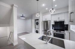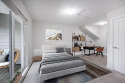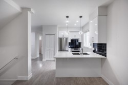 Recently renovated QUIET & bright SouthEast Corner End Unit - ultra clean and move-in ready! This like-new(2017), A/C-equipped townhome offers: 3 beds and 3 FULL baths! ground-level primary bedroom with ensuite (bright SE corner); spacious 2nd-floor bedroom with full bath (naturally lit NE corner); and an entire 3rd floor dedicated to an expansive master suite. BONUS: 110 SF of extra space on 3rd floor - 2 newly renovated FLEX rooms - ideal for office or hobby use. Bright main(2nd) floor with living room, family room, and separate dining area. New laminate flooring & stairs throughout, New lighting, side-by-side double garage, and large fenced front yard. Bus stop steps away and located in a high-ranking school catchment.