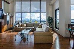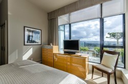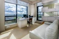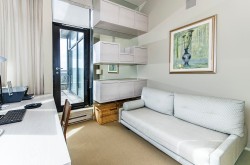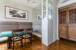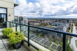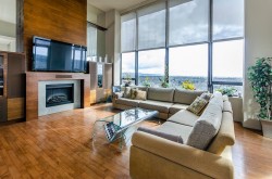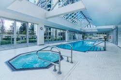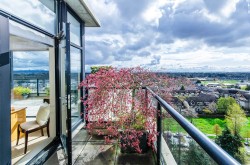 A luxurious penthouse at Hemlock Park in Richmond, built by the renowned Cressey Development Group. This 18th-floor suite boasts 2 bedrooms, 2 full bathrooms, and an expansive 282sqft wrap-around balcony equipped with an automatic sprinkler system for balcony plants. The interior features a 13'5" high ceiling living room and average 10'5" ceilings throughout. Sound proof wall in living room for Karacke entertainment. The unit includes 2 parking stalls (each stall fix for a Cyper Trunk) & 2 lockers, lots of custom built-in luxury furniture designed by Joey Chan. Residents have access to a mature garden with a BBQ area next to the Recreation Club, which offers wheelchair-accessible amenities: an indoor swimming pool, sauna, steam room, hot tub, exercise room, and lounge.