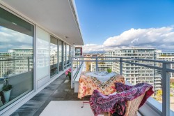 Welcome to the luxurious Concord Gardens South Estates in the heart of Richmond. This spacious 1,107 sq.ft corner unit features a functional open layout with 3 well-sized Bedrooms, thoughtfully positioned apart from each other for maximum privacy, Bosch SS appliances, floor-to-ceiling windows, and AC for heating and cooling. 1 locker and parking included. One of its most remarkable highlights is the expansive 449 sq. ft. balcony, offering breathtaking 90-degree views of the mountains and the entire city skyline. Diamond Clubhouse provides resort-style amenities, including a gym, indoor pool, sauna, steam room & hot tub, badminton court, and much more. Convenient lifestyle, only a few minutes distance to the new Capstan Skytrain Station, T& T Supermarket,Canadian Tires, Costco,etc.Must See!