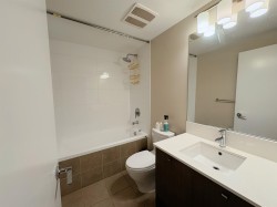 Ora building at Oval Village, central location. Walk to dyke trails, banks, restaurants, cafe, T&T supermarket, and Olympic Oval just within a minute. The SE unit at 2nd floor with concept of Live & Work, 1,011 SF functional space features 2 bedrooms, 2 bath like 2 suites (1 bedroom suite + 1 bedroom & living room, kitchen bachelor suite) with separate entry doors. Start your business & live same place. With air conditioning. 42,000 SF resort style wellness centre with indoor pool, squash court, gym, steam sauna.