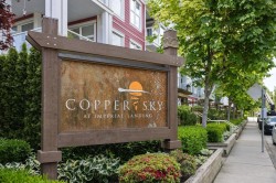 Welcome to Copper Sky, a coastal retreat nestled in beautiful Steveston. Offering modern elegance & comfort. This stunning 2 Bed, 2 Bath + Den condo spans over 1,000 sqft of thoughtfully designed space, featuring high ceilings & large windows that flood the home with natural light. The open-concept gourmet kitchen boasts SS appliances & granite countertops perfect for hosting family & friends. Relax in the spacious living area with a cozy fireplace & direct access to your private balcony, ideal for enjoying serene views of the waterfront. Retreat to the master bedroom with a walk-in closet & an ensuite bath. Enjoy access to amenities such as a fitness center & a rec room. Located in a coveted neighbourhood, you're just steps away from the scenic boardwalk, shops & highly rated restaurants.