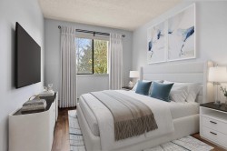 OPEN SATURDAY DEC 20TH 2-4PM: SPACIOUS 2 Bedroom unit at Belmont Park. Laminate & tile floors throughout. Large Primary bdrm with generous walk-in closet, plus second bedroom also a good size. Ample storage inside & easy access storage room on balcony. One covered parking space included. Easy walk to Cook Elementary School and MacNeil Secondary. Incredible central location, walking distance to Richmond Centre and Brighouse Canada Line Station. LOW monthly maintenance IMCLUDES hot water heat. Roof and piping replaced in 2010 and 2014. Wonderful amenities include Huge Rec Centre with basketball courts, outdoor pool, Billiards, ping pong and so much more. 2 cats allowed. Flexible move-in dates. Easy to show! (4 pictures virtually staged)