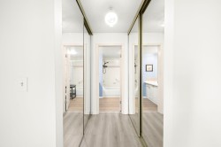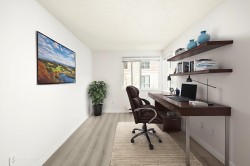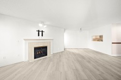 Welcome to this centrally located and well-designed corner unit! This functional layout features 2 spacious bedrooms, 2 bathrooms, and a versatile den/office that can easily serve as a 3rd bedroom, with a window for natural light. The primary bedroom offers an ensuite bath and a private balcony. Open-concept living and dining areas include a cozy gas fireplace, perfect for relaxing or entertaining. Conveniently situated within walking distance to the community center, Richmond Centre, transit, parks, and schools, this home combines comfort, convenience, and lifestyle in one great package. OPEN HOUSE SATURDAY 11/22 @ 2-4 PM.
