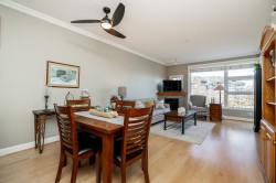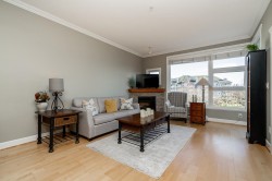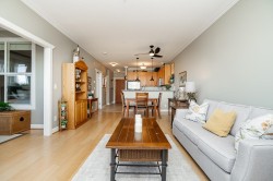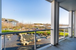Enjoy prime waterfront living at the coveted Copper Sky in Steveston South. This bright, over 1,100 sq ft 2-bed + den home boasts stunning Fraser River views and direct boardwalk access to vibrant Steveston Village. Vaulted living room ceilings, 9-ft ceilings throughout, and a large balcony create an open, airy feel. The gourmet kitchen features granite counters, gas cooktop, stainless steel appliances, and hardwood floors. Steps from shops, restaurants, the Community Centre, and village amenities - perfectly blending resort-style living with everyday convenience. Includes 2 secured parking stalls and 1 storage locker.
