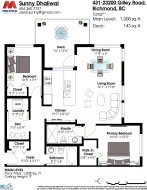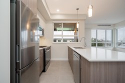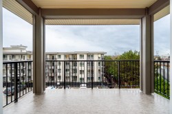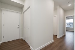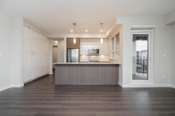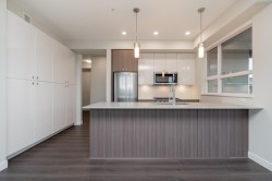 Bright and spacious top-floor corner condo offering 2 bedrooms, 2 bathrooms, and 1008 aq ft of well-designed living space with southwest exposure and panoramic city views. The primary bedroom features a walk-in closet and private ensuite, complemented by a second bedroom and a large den ideal for a home office or flex space. Enjoy year-round comfort with air conditioning and relax on the balcony with a gas hookup for BBQs. Includes 2 EV-ready parking stalls and 1 storage locker. Located in a brand new building with a fitness room, just minutes to Queensborough Landing Outlet, amenities, and quick access to Rwy 91. This rare top-floor home offers excellent natural light, privacy, and convenience in one of Richmond's most connected and desirable locations. OPEN HOUSE Jan 31 & Feb 01 2-4 PM.