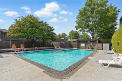 Bright and inviting corner unit two-level PARK VIEW townhome in Sharon Gardens! This home features a crisp white kitchen, a new bathroom, new laminate flooring on the main level, and numerous updates throughout the year. All bedrooms are generously sized, with the primary bedroom offering soaring vaulted ceilings. Skylights in the bathroom and hallway provide abundant natural light. Enjoy a massive fully fenced patio—ideal for outdoor entertaining right next to a quiet park. This well-maintained complex offers amenities like an outdoor pool, guest suites, a workshop, and more. Located in a family-friendly Central Richmond neighbourhood, right beside Walter Lee Elementary, close to parks, Garden City plaza. Open House: Sat, Jan 10, 2:30-4:00pm.