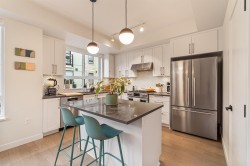 Welcome to this bright, beautiful, south-facing end-unit townhome in Parc Riviera Mews, Richmond’s desirable Bridgeport waterfront community. Featuring 3 bedrooms, 3 washrooms, 9-ft main-floor ceilings, engineered hardwood, & a modern kitchen with European appliances & a gas stove. Thoughtful upgrades include a custom pantry, upgraded lighting, custom door hardware, & statement wall panelling. Enjoy an attached double garage & efficient geothermal heating/cooling for year-round comfort. Amenities include a clubhouse, fitness centre, indoor pool with hot tub, BBQ patio, & a scenic dyke trail for riverfront walks. Steps to Tait Riverfront Park, two blocks to Robert J. Tait Elementary, & a short stroll to the SkyTrain, shopping, recreation. Don’t miss this opportunity. OH, Sat, Jan 31st, 2-4p