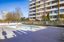 REGENCY PARK TOWERS, well maintained concrete building with an outdoor pool. Located across Richmond Centre Mall, next to Library, Minoru Park. Walking distance to Skytrain, bus stop, City Hall, grocery stores, restaurants. Spacious 1 bedroom and balcony with sliding door of which could be a den/office. Big living room with laminate floor all thoroughly. School Catchment: Brighouse Elementary and Richmond Secondary.