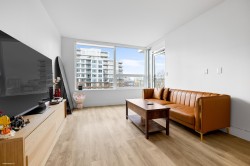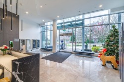 River Park Place 3 by Intracorp offers modern living in Olympic Oval neighbourhood. This 686 sf SOUTH-facing JR 2-bedroom home ft a bright & efficient 1 BR+an OVERSIZED den, ideal for use as a 2nd BR, w/ no wasted space. Big windows bring in abundant natural light. Enjoy morning coffee on the 71 sf balcony w/ views of the iconic Richmond Olympic Oval & a peek-a-boo water view. The contemporary kitchen offers a functional island/quartz countertops/gas cooktop/premium stainless steel appliances+ample cabinetry. Spa-inspired bathroom w/double vanities. Exceptional 2-level amenities include a basketball court/gym/games and karaoke rooms/ a lounge w/ full kitchen/outdoor BBQ areas/putting green & landscaped gardens. Steps to cafés/restaurants/scenic river walks & min. to shopping & Vancouver.