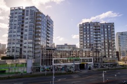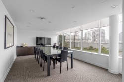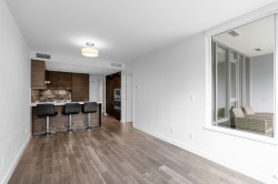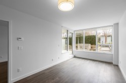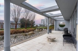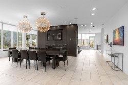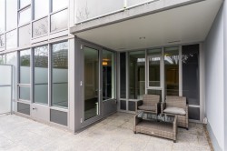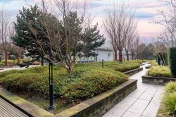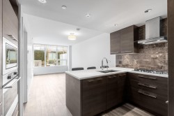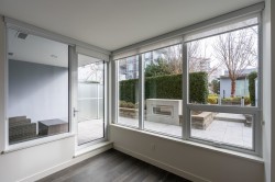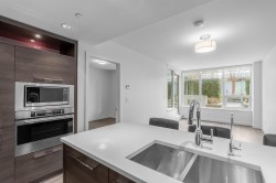 This amazing 1 bedroom + den (that’s great for a home office) offers 616 SF of super spacious living and features a huge SE facing private patio w/ its own gas fireplace that adds 270 SF of outdoor living & enjoyment! Super bright, air conditioned and faces the quiet inner courtyard, while offering a large gourmet kitchen, bar seating, HRV clean air system, stainless steel appliances, gas cooktop, ample pantry storage, laminate floors thru-out, radiant floor heat in bathroom, insuite laundry, large walk-in closet, 1 parking + 1 locker. All this in a well-managed complex w/ concierge, club lounge, multi-purpose sports court, meeting room and rooftop gardens. All this in a central loc that’s just steps to the Olympic Oval, Fitness World, restaurants, banks & the Dyke trails. Move in ready!