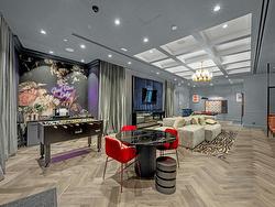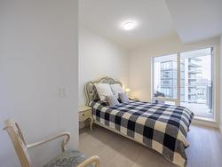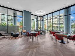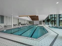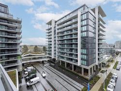 This stunning 1 bed + den unit boasts SOUTH-facing windows, enjoy sophisticated interior features such as premium Italian kitchen cabinetry, high-end countertops, and Miele appliances. The open-concept design is complemented by hardwood floors, air conditioning, and central heating, creating a comfortable and stylish living space. Additional highlights include an EV-ready parking stall and a secure locker for added convenience. Experience amenities with over 20,000 sq. ft. of exclusive space, including a serene green space with a water garden, an indoor swimming pool, sauna/steam room, fitness center, yoga/dance room, club room, music room, and a social/games room, steps to river dyke, Oval, T&T and restaurants. Call your showing today!