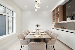 Built by Leisure Homes, this luxury brand new custom residence is centrally located in the heart of Riverdale, Richmond's most prestigious neighbourhoods. Defined by wide roads, no overhead power lines, an elegant well planned streetscape without any gutters. Residence showcases refined modern living with a grand open concept layout, soaring 16'4ft ceilings, Miele appliances, large spice kitchen, and tile throughout main. A heat pump system delivers seamless year round comfort, air conditioning and radiant in floor heating. Main level offers a discreet mortgage helper/in-law suite, upper floor features four private bedroom ensuites, highlighted by a lavish primary bedroom with a 12ft ceiling. Minutes to Terra Nova Village, Richmond Centre, and located within Burnett Secondary.