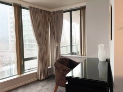 Unique hotel Strata, Executive Tower in Richmond Minoru Lake & Park. Fantastic air-conditioned 1 bedroom plus Den boasts spacious living and dining room, ceiling-to-floor window, in-suite Laundry, Secure Parkade & Storage Locker. Upgrade in Dec 2022 with new curtain, carpet, washer/dryer, dishwasher, stove,hood vent. Amenities include Indoor Swimming Pool/Hot Tub/Gym/Garden Terrace on the 8th Floor. Step out your front door & Eat/Shop/Play. A few minutes walk to Richmond Centre, skytrain station, T&T, and public transit. Nothing to do but move in. 1 parking on 6.5th floor and 1 locker. Ideal for first-time home buyers or investors .